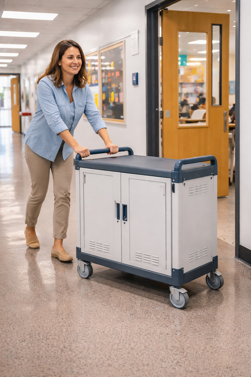 Solución de laboratorio computacional móvil que permite almacenar, transportar y cargar dispositivos tecnológicos de forma segura, eficiente y ordenada