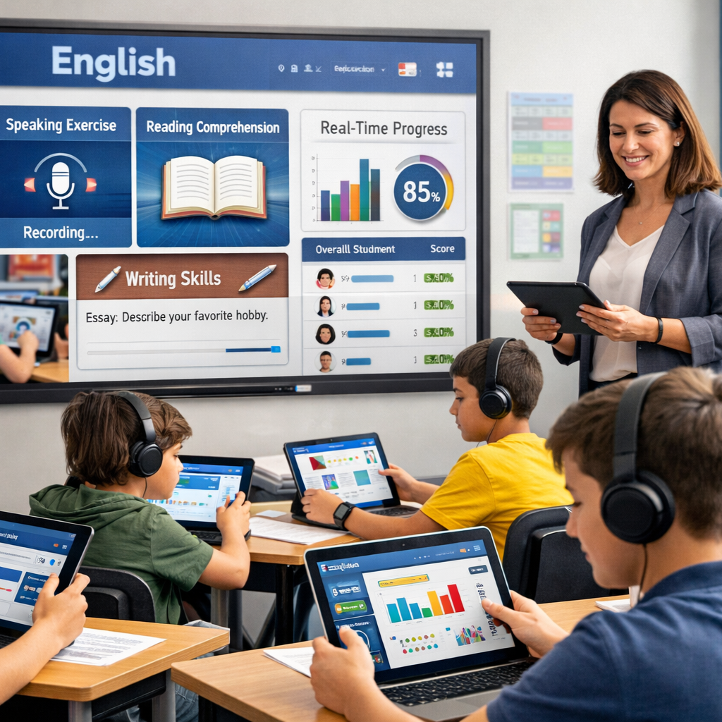 Aprendizaje de idiomas con tecnología avanzada. Plataforma especializada para mejorar habilidades de escucha, pronunciación y comunicación en inglés.
